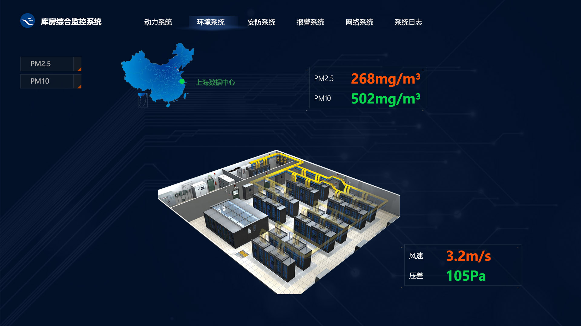 通過在機房安裝PM探測器,監(jiān)測機房的空氣顆粒物情況。